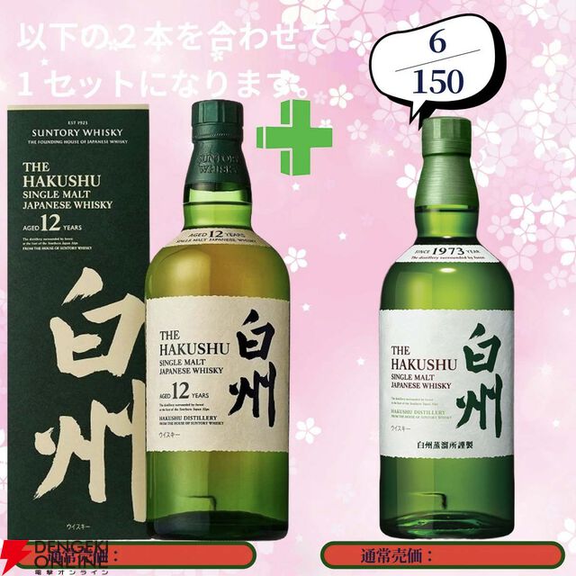 17,680円で山崎18年+山崎12年、白州18年+白州12年、厚岸 立秋+立夏のセットなどを狙える2本セットの『ウイスキーくじ』が販売中