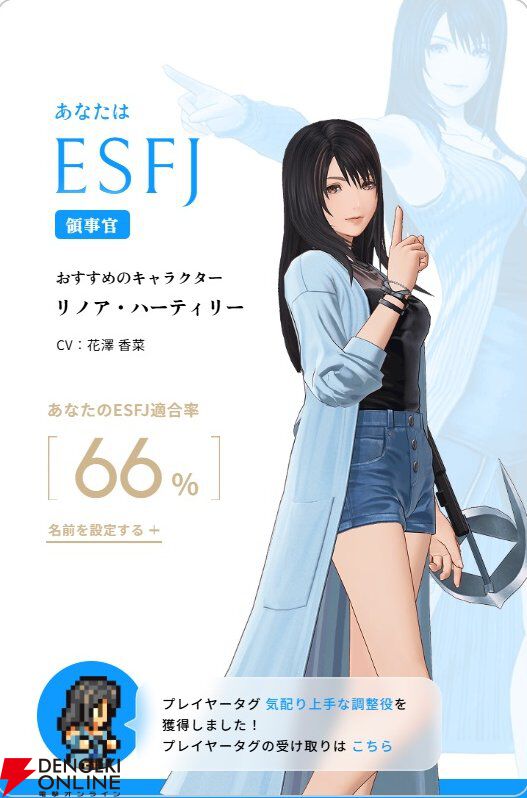 【ディシディア デュエルム FF】性格診断をやってみたら…あの美少女が出た! 結果ごとに“プレイヤータグ”がもらえるのでお見逃しなく