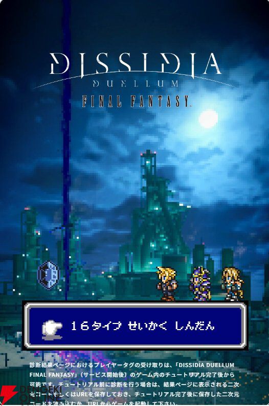 【ディシディア デュエルム FF】性格診断をやってみたら…あの美少女が出た! 結果ごとに“プレイヤータグ”がもらえるのでお見逃しなく