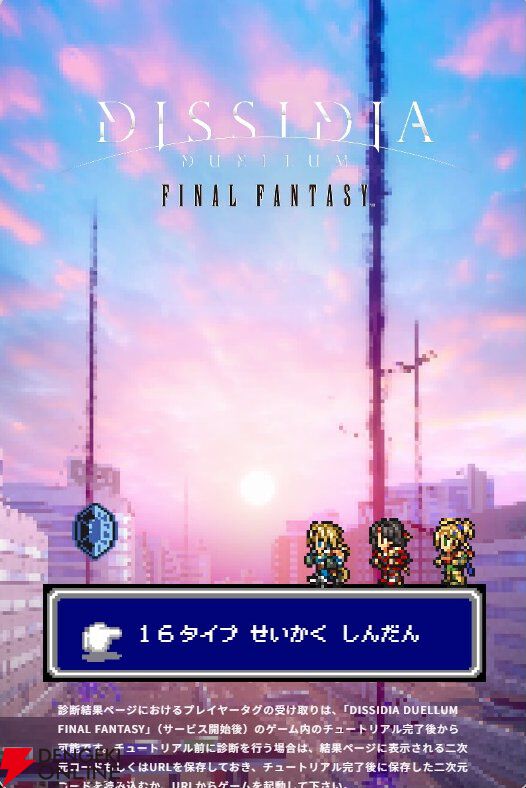 【ディシディア デュエルム FF】性格診断をやってみたら…あの美少女が出た! 結果ごとに“プレイヤータグ”がもらえるのでお見逃しなく