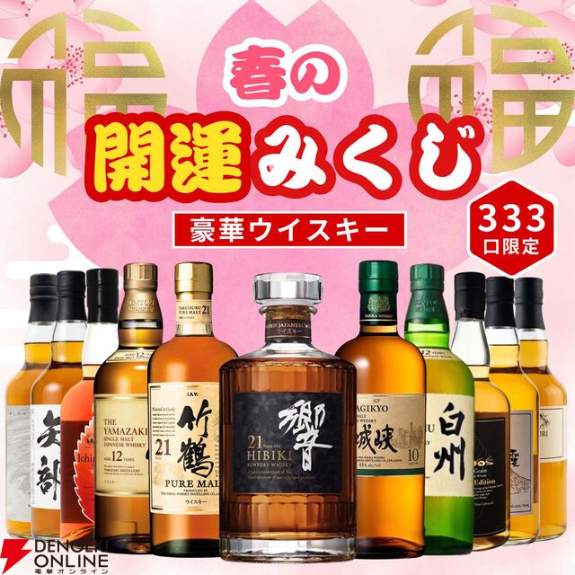 5,980円で響21年、竹鶴21年、宮城峡10年を狙える春の開運ウイスキーくじが登場