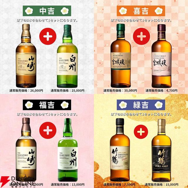 12,999円で山崎18年+山崎12年、白州18年+白州12年、響17年+響JHのセットなどを狙える2本セットの超高確率ウイスキーみくじが販売中