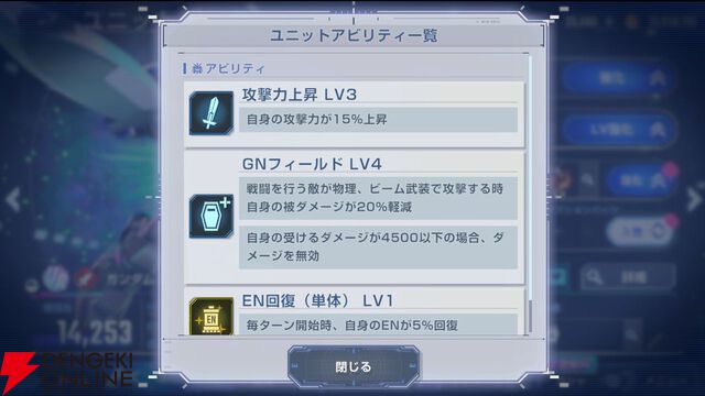 【Gジェネ エターナル】アビリティ“GNフィールド”と“陽電子リフレクター”に効果を追加。さらに、アビリティ“(回避選択した戦闘開始時)回避率上昇”が“(反撃時・回避選択時)回避率上昇”に変更