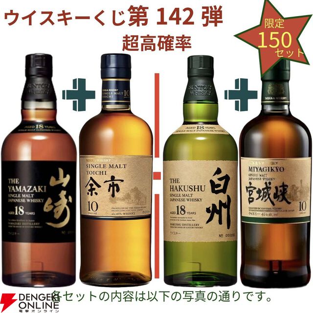 17,680円で山崎18年+余市10年、白州18年+宮城峡10年、厚岸 啓蟄+立夏のセットなどを狙える2本セットの『ウイスキーくじ』が販売中