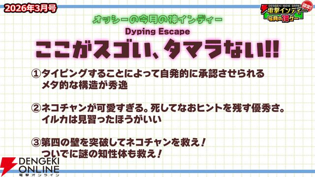 【今月の神ゲー:電撃インディー認定】『MARY - メアリ姫の奪還』ほか、『Creature Kitchen』『Dyping Escape』『敏感!恋のアンテナ ビンビン別嬪荘』など11作をプッシュ(2026年3月)