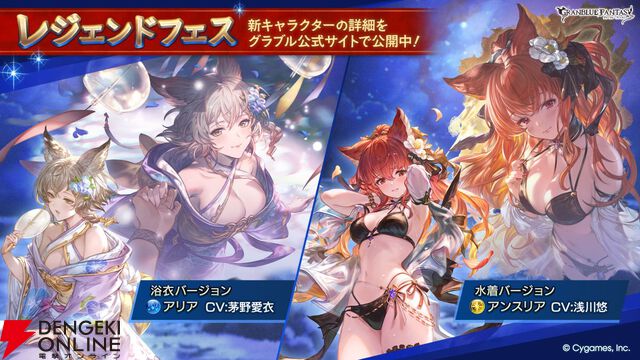 『グラブル』レジェンドフェス開催。アリア(声優 茅野愛衣)浴衣バージョン、アンスリア(声優 浅川悠)水着バージョン登場【グランブルーファンタジー】