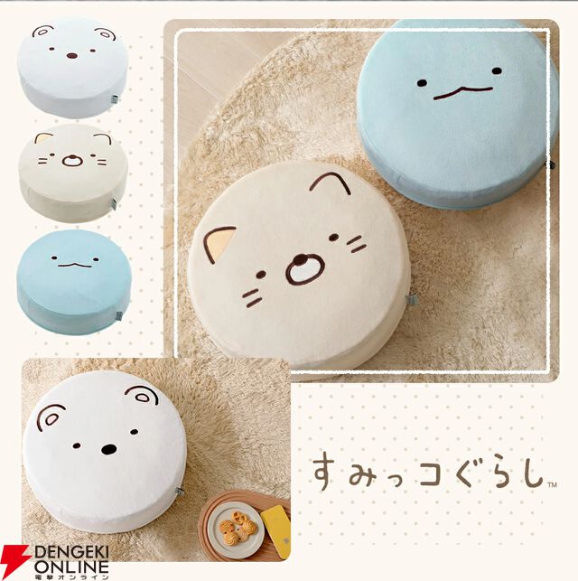 『すみっコぐらし』&『リラックマ』のラウンド型クッションが、全5種類で登場。キュートでもちもちの座り心地がクセになる♡