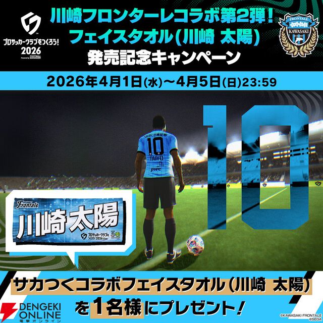 川崎太陽が『サカつく2026』に登場!? フェイスタオル(川崎太陽)のプレゼントキャンペーン実施中【エイプリルフール】
