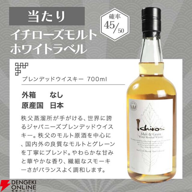 知多かイチローズモルト ホワイトラベルのどちらかが必ず当たる『ウイスキーくじ』が販売中