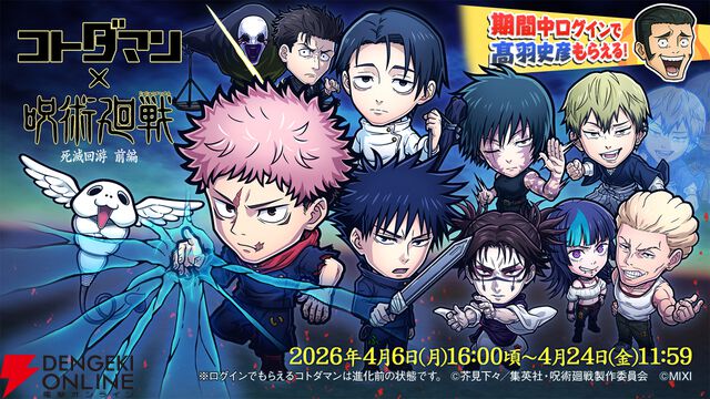 『コトダマン』×『呪術廻戦』死滅回游 前編コラボが4月6日より開催。“虎杖悠仁vs乙骨憂太”“日車寛見”“禪院直哉”などがコラボに登場!