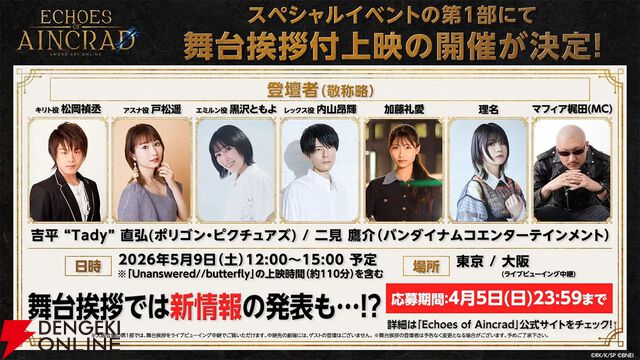 【SAO】『Unanswered//butterfly』を劇場で見るスペシャルイベントの応募締切は本日4月5日23:59まで! 『Echoes of Aincrad』プレミアムエディションなどの予約を受付中
