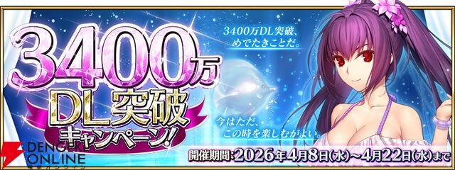 『FGO』3400万DL突破キャンペーンが開催。水着スカディやスペース・イシュタルらのPU召喚&“防御無視+宝具威力アップ”を持つ概念礼装が登場。夢火も獲得可能