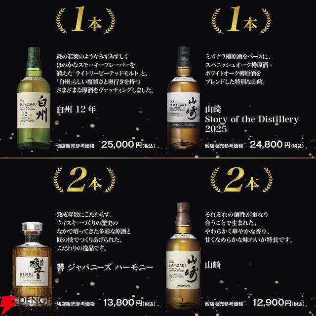11,800円で山崎18年、白州12年、白州Story of the Distillery2025を狙える『ウイスキー福袋(くじ)』が販売中