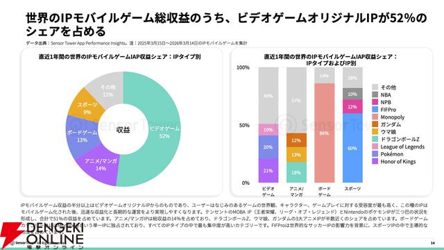 2026年世界のIPゲーム市場インサイト。Tencentが世界のモバイルゲームIP親会社収益トップの座を維持、ガンダムIPモバイルゲームの収益は前年比約10倍に急増