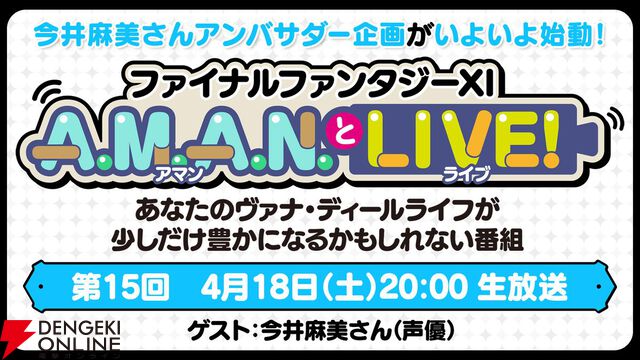 今井麻美さんによる『FF11』アンバサダー企画始動。『FF11』バラエティ番組“A.M.A.N.とLIVE!(アマンとライブ!)”第15回が4月18日放送