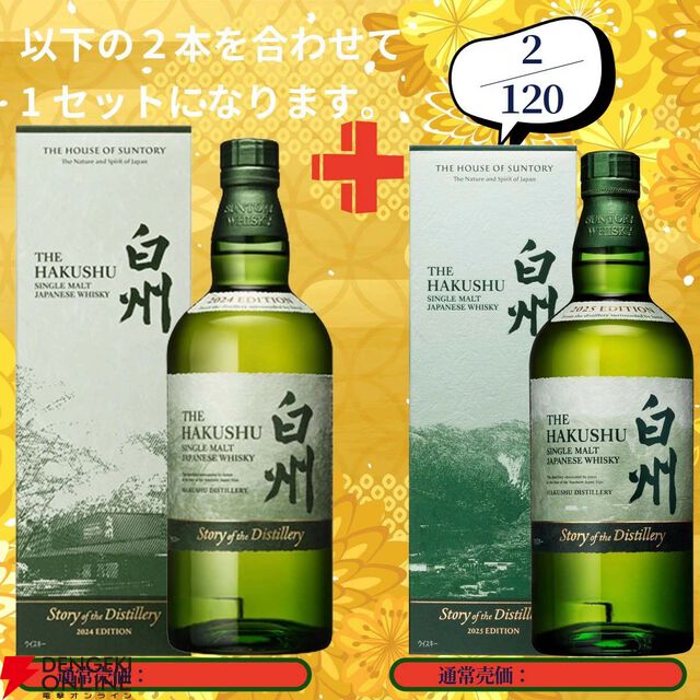 20,880円で山崎18年+山崎12年、白州18年+白州12年、厚岸 春分+立夏のセットなどが当たる2本セットの『ウイスキーくじ』が販売中