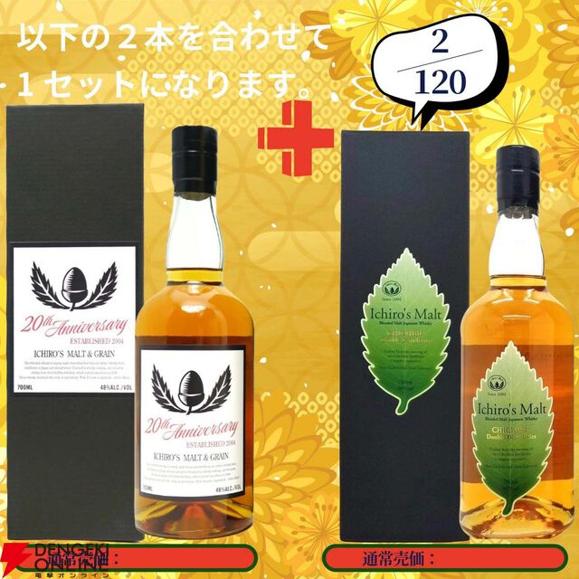 20,880円で山崎18年+山崎12年、白州18年+白州12年、厚岸 春分+立夏のセットなどが当たる2本セットの『ウイスキーくじ』が販売中