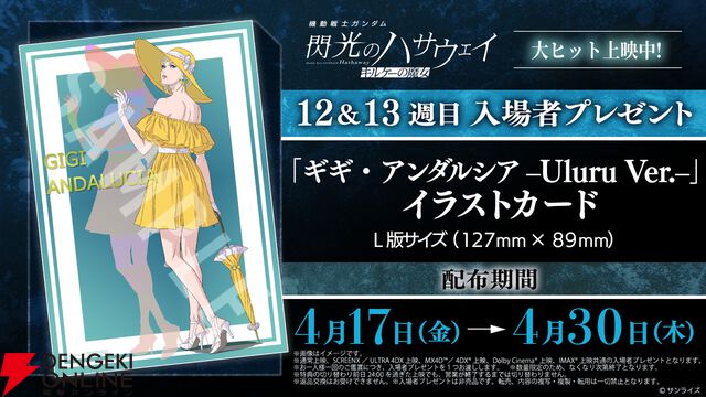 『閃光のハサウェイ キルケーの魔女』12&13週目入場者プレゼントはイラストカード《ギギ・アンダルシア –Uluru Ver.–》に決定。 制作スタッフトークショーを4/21に開催