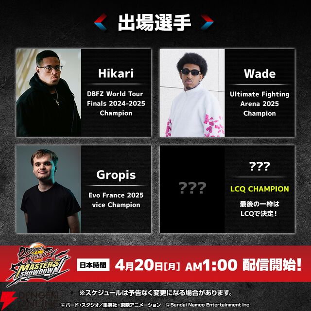 大会“ドラゴンボール ファイターズMasters Showdown”の日本語ミラ―配信が4月20日午前1時に配信