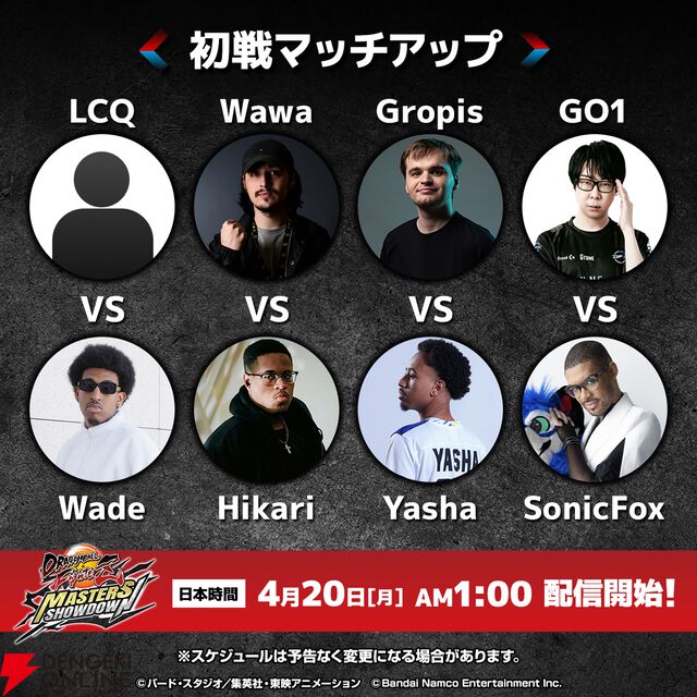 大会“ドラゴンボール ファイターズMasters Showdown”の日本語ミラ―配信が4月20日午前1時に配信