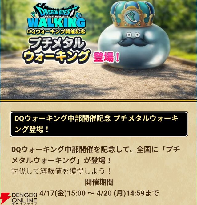 『ドラクエウォーク』プチメタルウォーキングが全国各地で出現中。DQウォーキング中部開催記念パスの販売もスタート、衣装付きでは金シャチの兜【黒】が入手可能