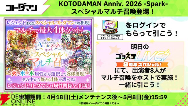 『コトダマン』8周年記念イベントが4月18日より開催。新グランドコトダマン“ンヘループ(天佑)”登場! 虹のコトダマ5,000個もらえる