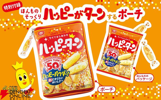 『HAPPY TURN ツイてるしあわせ ハッピーターン 50th ANNIVERSARY BOOK』が予約開始。甘じょっぱさがクセになる定番お菓子の本物そっくりポーチ付き!