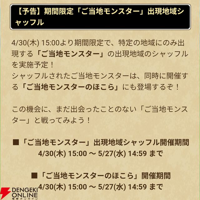 『ドラクエウォーク』 “DQ7 ReWALKイベント”エンディング&超高難度クエスト配信。宝の地図の推奨レベルが特級職81~85が解放され、4/30からはご当地モンスターシャッフルも実施