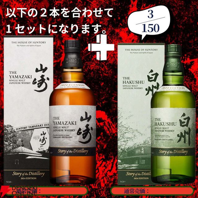 17,880円で山崎18年+山崎12年、白州18年+白州12年、厚岸 春分+立夏のセットなどを狙える2本セットの『ウイスキーくじ』が販売中