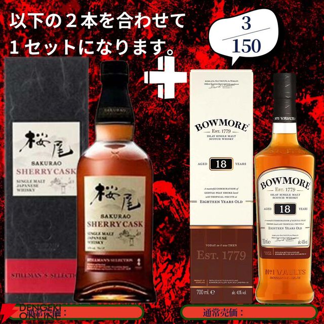 17,880円で山崎18年+山崎12年、白州18年+白州12年、厚岸 春分+立夏のセットなどを狙える2本セットの『ウイスキーくじ』が販売中