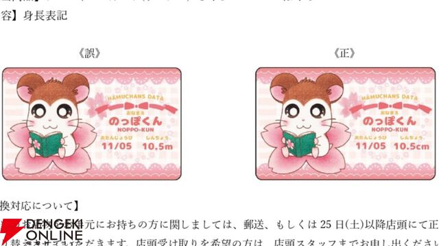 『とっとこハム太郎』のっぽくんが身長10.5“m”に。とっとこハムタウンショップのグッズの誤表記がのっぽにもほどがある