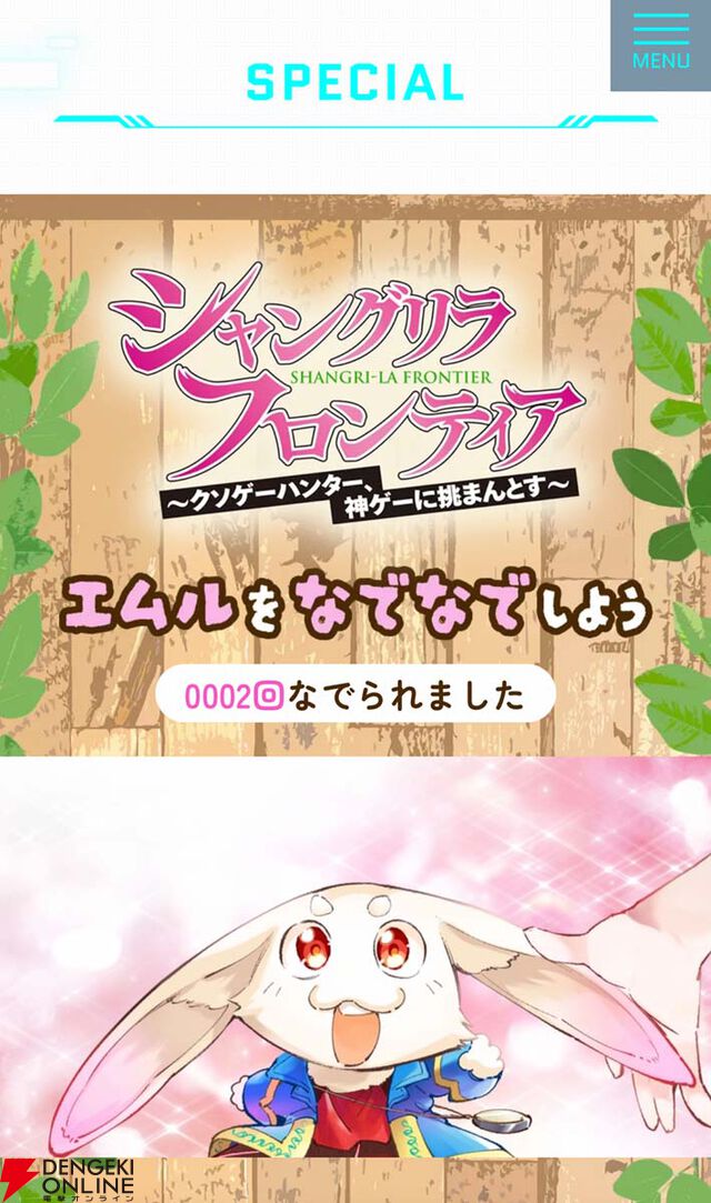 『シャンフロ』原作公式サイトに“エムルをなでる”新機能追加。ひたすらなでなでできるだけ。100回なでてみたら…クセになる…かも!?【シャングリラ・フロンティア】