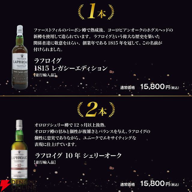 入っているのはラフロイグのみ! ラフロイグ10年カスクストレングス、ラフロイグ1815レガシー、ラフロイグ10年シェリーオークが狙えるウイスキーくじが販売中