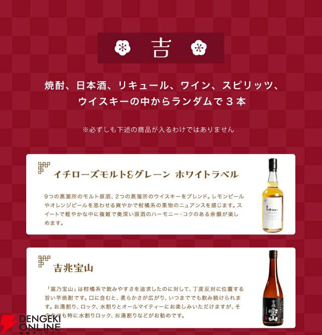 7,777円で山崎12年、響BC、響JHなどウイスキーを始め、お得なお酒のセットが狙える2026年春節福袋が販売中