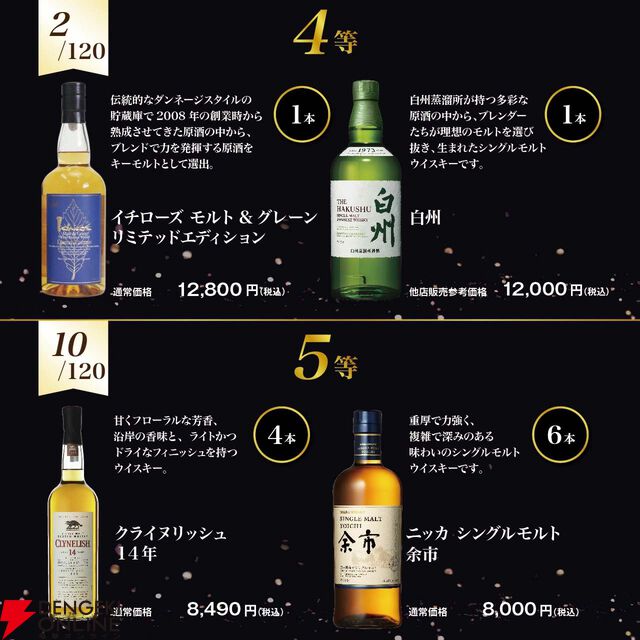 6,390円で響21年、山崎12年、イチローズモルト リミテッド、イチローズモルトWWRを狙えるウイスキーくじが販売中