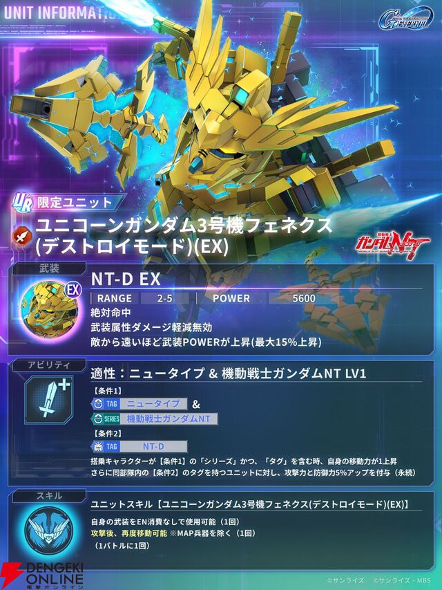 【Gジェネエターナル】限定URフェネクス(デストロイモード)/ヨナ・バシュタ、URハルファスガンダム/アプロディアの性能が公開