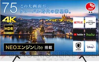ゲームプレイや動画鑑賞にも最適な75V型4K液晶テレビが26%オフ!【Amazon ブラックフライデー】