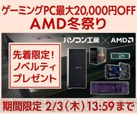 ゲーミングPCが最大20,000円オフ! パソコン工房『AMD冬祭り』開催中