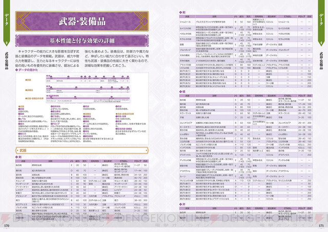 武器、騎士団、戦技/魔法、スキルなど、戦力アップに欠かせない数々のデータを掲載。