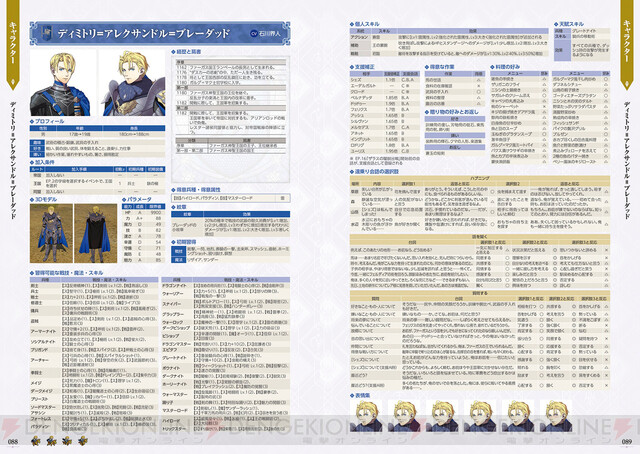 パラメータや習得スキルを始めとする戦闘データと、料理の好みや遠乗り会話の選択肢など、交流情報までしっかりフォロー。