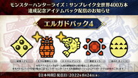 <画像2/2>『モンハンライズ:サンブレイク』400万本達成記念アイテムパックが配信決定! 公開日時 2022年08月23日(火) 16:09 最終更新 2022年08月23日(火) 16:10 前へ 本文に戻る