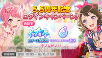 <画像2/13>『ガルパ』5.5周年記念キャンペーン開始。最大ガチャ70回無料やスター5500個プレゼントなど!