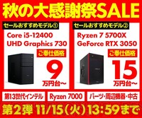 <画像1/7>パソコン工房『秋の大感謝祭セール』BTOパソコン第2弾開催中!