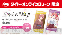 <画像1/2>『五等分の花嫁∬』五つ子の美麗ビジュアルがビッグタオルに。手に入るのは『タイクレ』だけ!