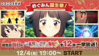 <画像1/1>アニメ『この素晴らしい世界に爆焔を!』めぐみんの誕生日(12/4)は全話無料一挙放送を見てお祝いしよう