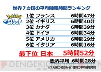 <画像3/9>『ポケモンスリープ』世界7カ国の平均睡眠時間ランキングが発表。日本は世界平均より36分少なく最下位 公開日時 2024年01月26日(金) 12:09 最終更新 2024年01月31日(水) 11:05 前へ 本文に戻る 次へ