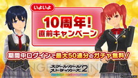 『スクスト2』10周年に向けて直前キャンペーンを開催。最大50連分のガチャが無料になるログインボーナスを実施中