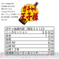 <画像2/9>宮城峡フルーティ&リッチ、山崎12年、山崎・白州NV、桜尾が4,620円で当たるかも!? 『ウイスキーガシャ』が4月4日21時より販売 公開日時 2024年04月04日(木) 20:06 最終更新 2024年04月04日(木) 20:10 前へ 本文に戻る 次へ