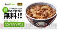 <画像1/1>ウーバーイーツで吉野家の配送料が無料に。期間中は何度でも!