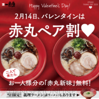 14日はペアで一風堂へ! 1人分のラーメンが無料のバレンタイン企画実施